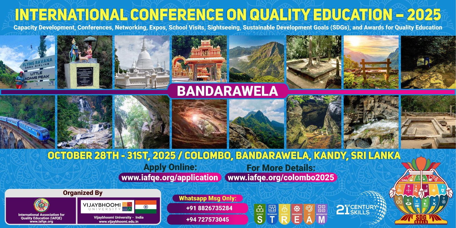 The physical conference will be held from October 28th to 31st, 2025, in Colombo, Bandarawela, Kandy, Sri Lanka.