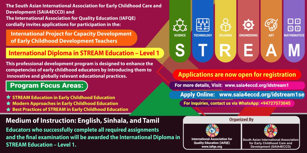Parallel to the International Conference Series on Quality Early Childhood Education, the South Asian International Association for Early Childhood Care and Development is implementing the ‘International Project for Capacity Development of Early Childhood Development Teachers (IPFCD),’